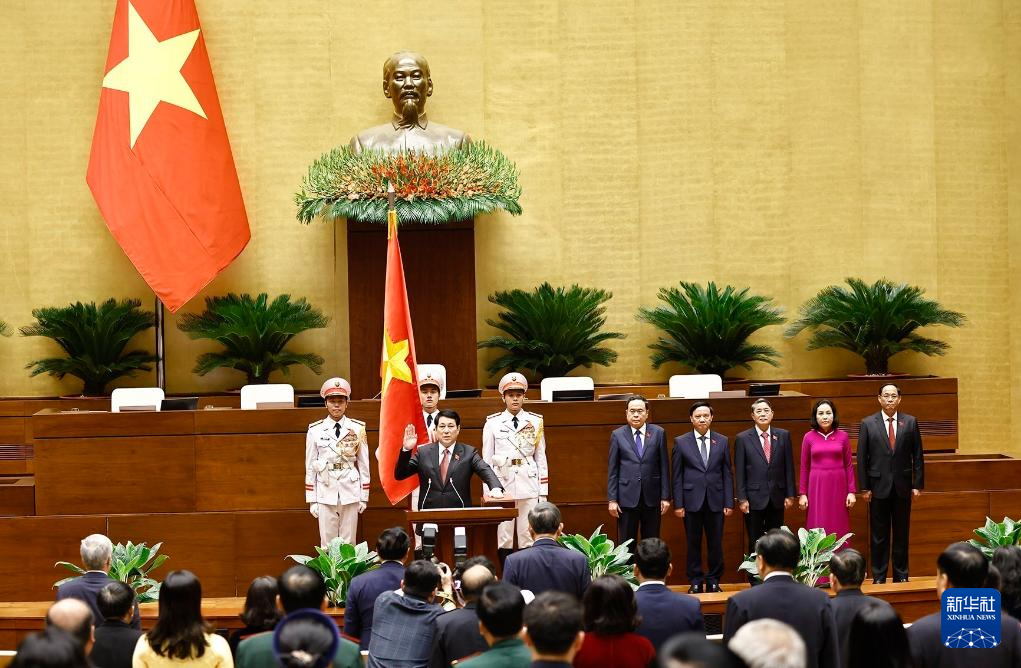 ??梁強隨后宣誓就職。他在發表就職演說時表示,將根據越南社會主義共和國憲法以及黨、國家和人民賦予的任務,履行好國家主席的職責,繼續保持和加強黨內的高度團結,與全黨全軍一道弘揚民族大團結力量。