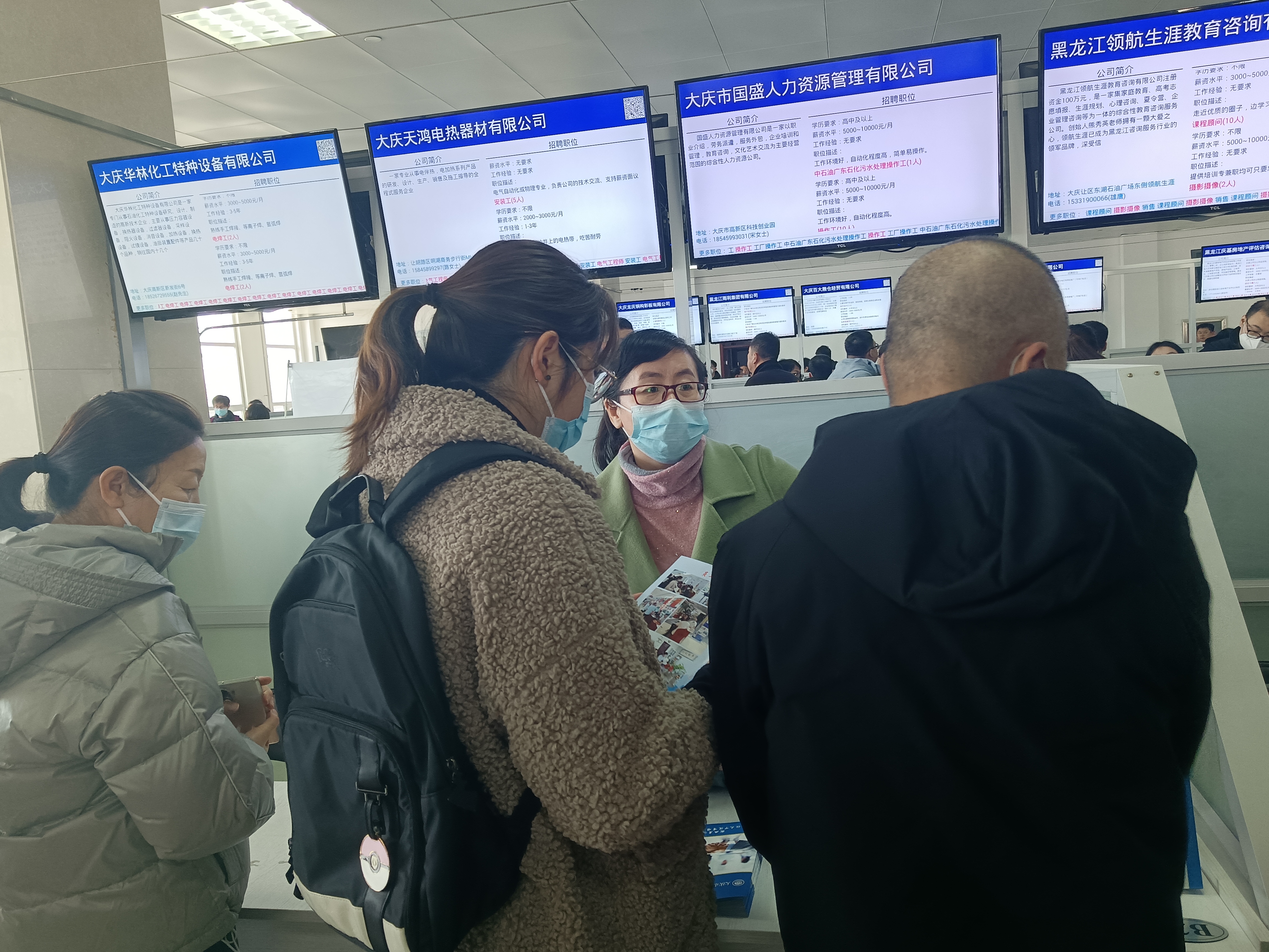 此次招聘會是由大慶市高新區黨群工作部主辦,高新區人才服務中心,退伍軍人服務中心承辦。這次線上線下招聘會,園區共有大慶市國盛人力公司等84家企業和人力公司受邀參會,提供就業崗位600余個,崗位涉及化工企業、軟件工程師、市場經理、行政管理、財會金融、教育培訓、多媒體策劃等領域。